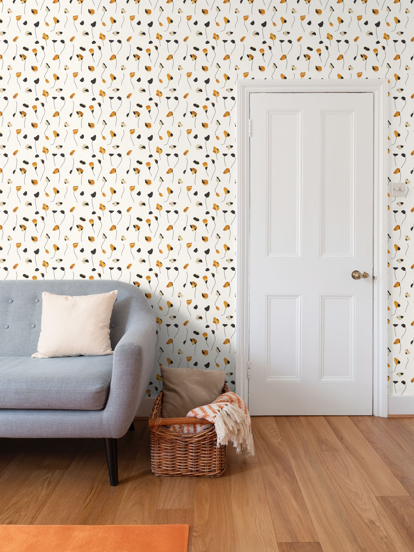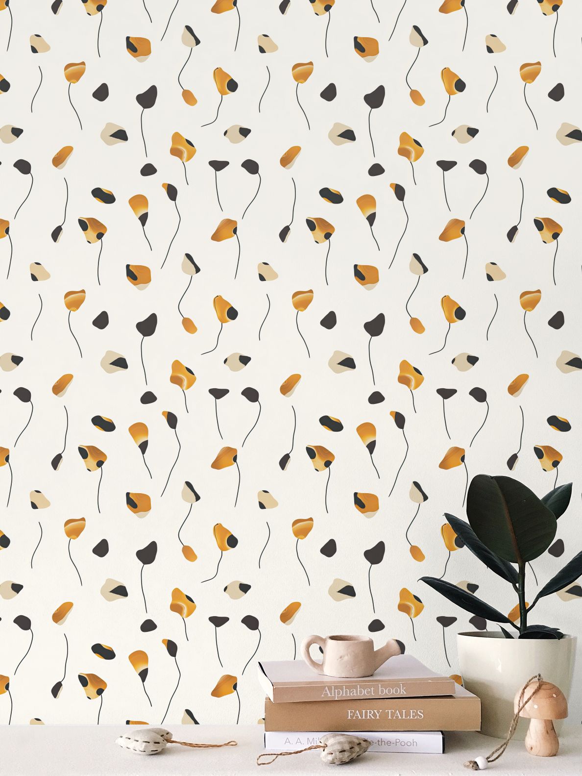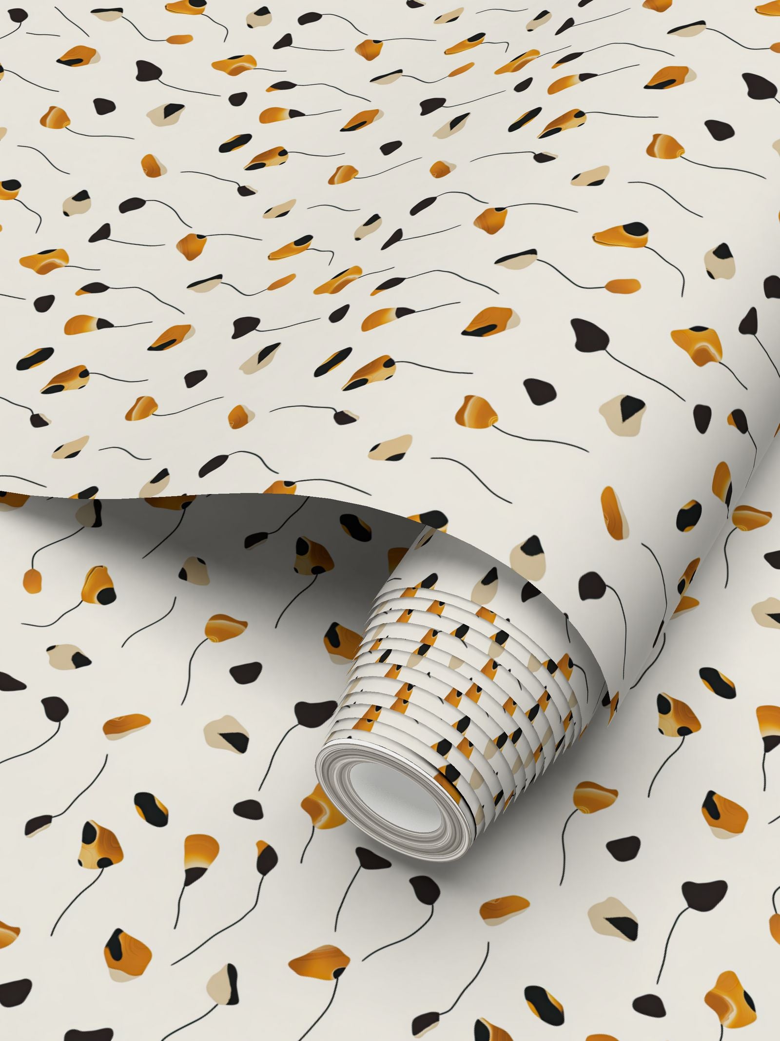 A delicate pattern featuring abstract flower petals in a unique tortoiseshell color and a dainty stem
